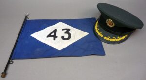 Nederlandse KL hoofd officiers pet met stafauto vlag 43e Painfbat?