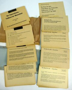 Mapje met tekst bladen voor een NVA propaganda dia serie