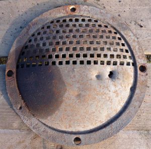 Bunker rooster voor ventielatie systeem, buitenzijde, met kogelgat