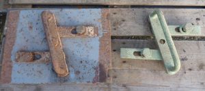 Bunker, verschuifbare pantserplaat met greep voor scharten lafette