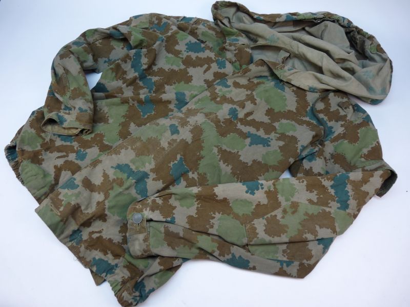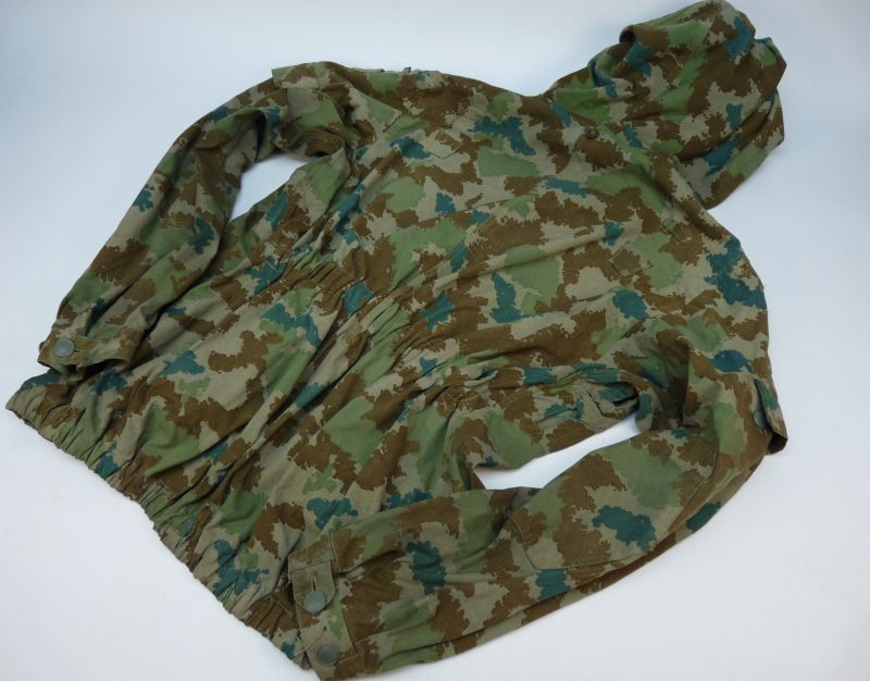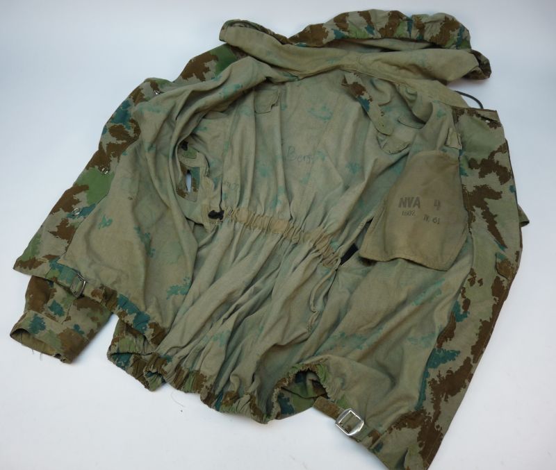 Originele Oost-Duitse (DDR / NVA) camouflagejas uitgevoerd in het karakteristieke Blumentarn patroon, gedateerd 1961. Dit vroege camouflagepatroon werd gebruikt door de Nationale Volksarmee en andere DDR-eenheden tijdens de beginjaren van de Koude Oorlog.