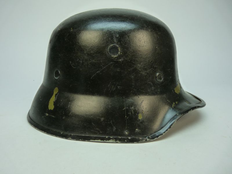 Deze authentieke brandweerhelm uit de voormalige DDR (Oost-Duitsland) is gebaseerd op het iconische M56 Stahlhelm ontwerp, bekend om zijn robuuste en functionele vorm. De helm is vervaardigd uit fiber en afgewerkt met een zwarte glanzende laklaag, typerend voor civiele diensten zoals de brandweer in de DDR-periode.