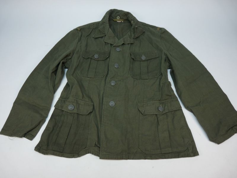 Het model heeft een klassieke militaire uitstraling met meerdere praktische zakken aan de voorkant en een knoopsluiting. Dankzij de stevige stof en comfortabele pasvorm is dit jasje niet alleen interessant voor verzamelaars van militaire memorabilia, maar ook perfect als robuust vintage werkjasje of voor outdoor gebruik.