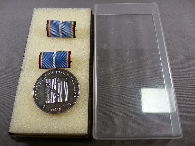 Prachtige originele onderscheiding uit de voormalige DDR (Deutsche Demokratische Republik), uitgereikt voor langdurige en trouwe dienst ter bescherming van de arbeiders- en boerenstaat.