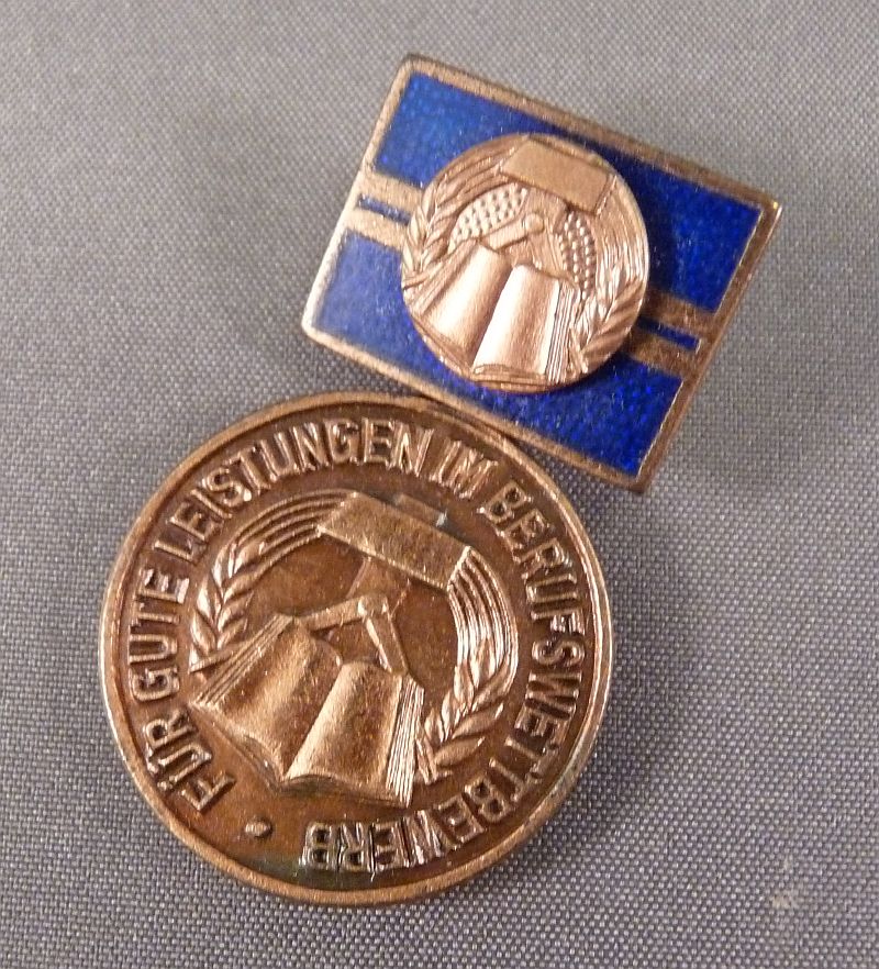 Deze set bestaat uit twee originele medailles uit de voormalige Duitse Democratische Republiek (DDR), bedoeld als erkenning voor uitmuntende prestaties in het beroepsonderwijs en de vaktechniek.