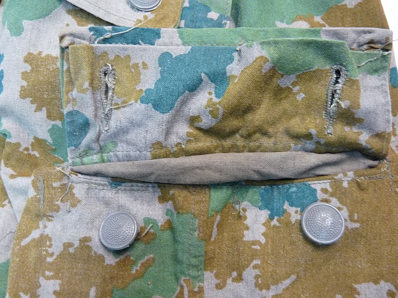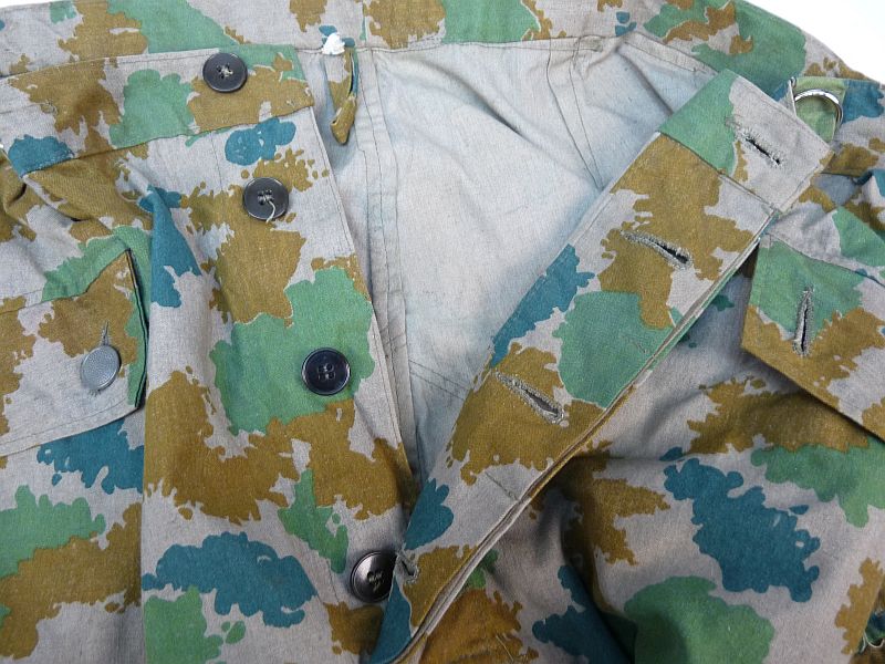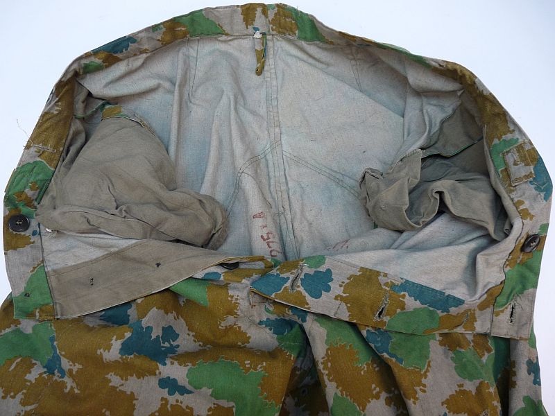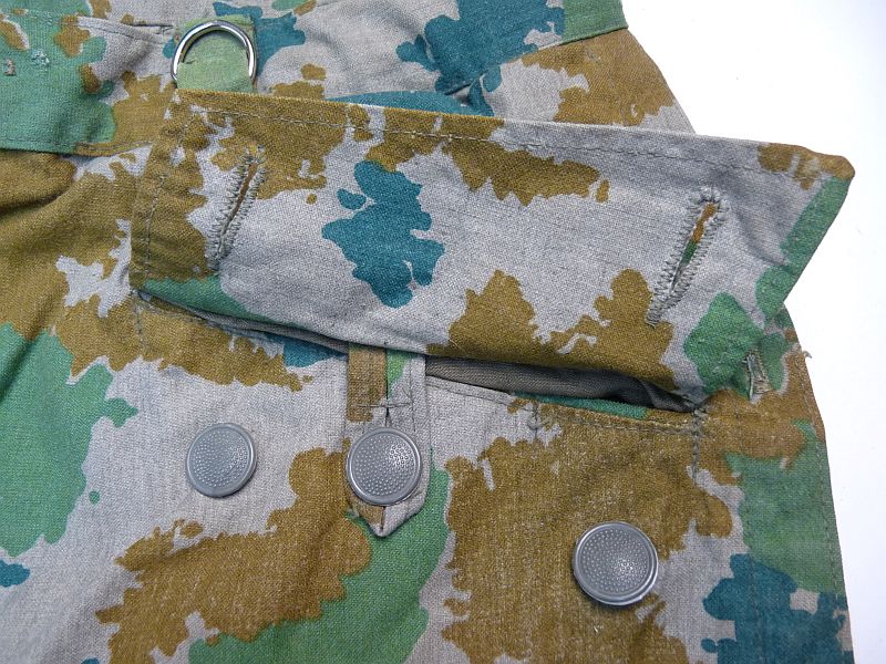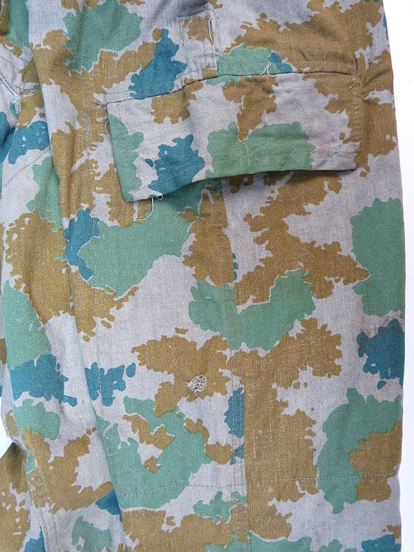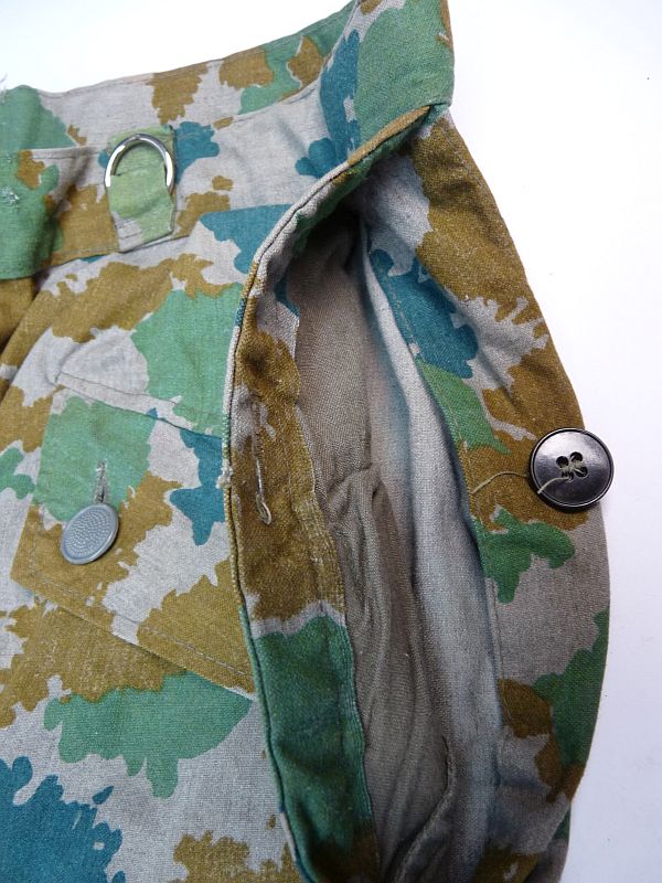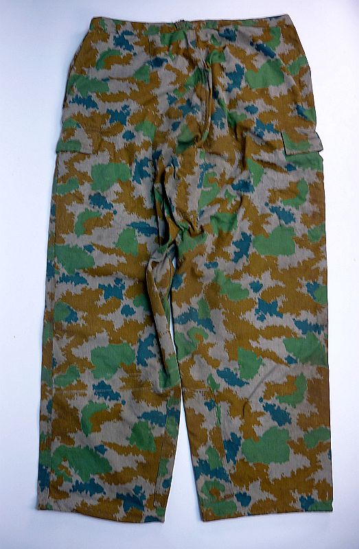 Broek is uit het modeljaar 1964, deze heeft in de rechterbroekzak al mogelijkheden voor het opbergen van de dosis meter met toebehoren en extra verstevigings vlakken onderaan de binnenzijden van de broekspijpen en geen koordje meer in de onderzijde