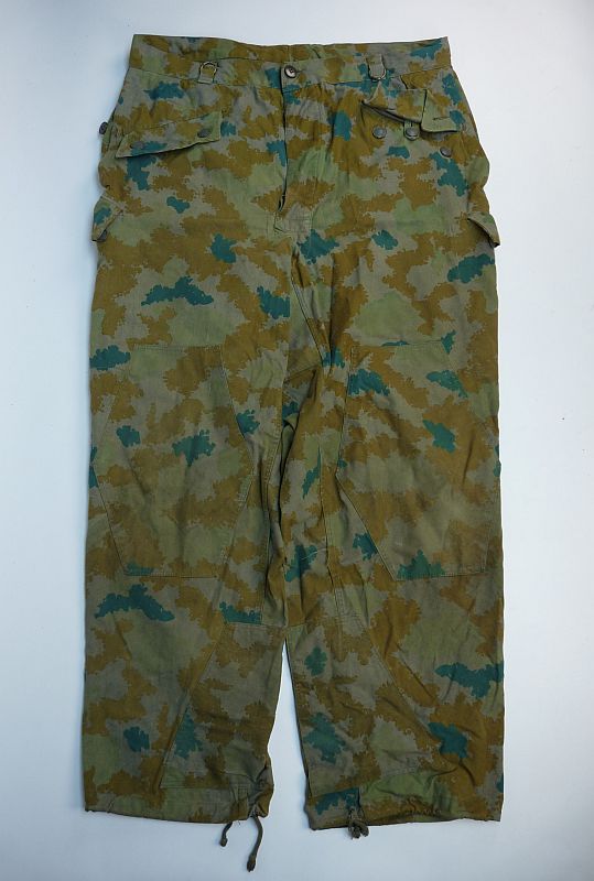 Broek is uit het modeljaar 1963, deze heeft in de rechterbroekzak al mogelijkheden voor het opbergen van de dosis meter met toebehoren en extra verstevigings vlakken onderaan de binnenzijden van de broekspijpen en nog koordjes in de onderzijde (is bij het model 1964 vervallen)