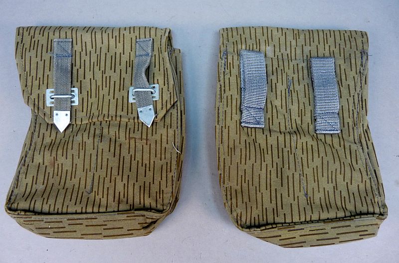 Bijzondere en minder vaak voorkomende gebogen NVA magazijntas uit de voormalige DDR, (de latere zijn recht) uitgevoerd in het kenmerkende Strichtarn (regenpatroon) camouflage.