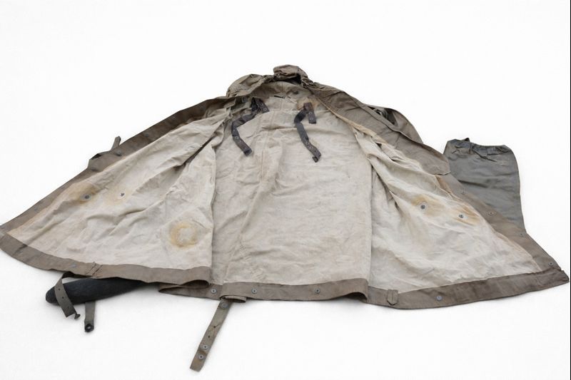 Uniek set uit de begin jaren 70, bestaat uit een jas, overlaarzen en handschoenen