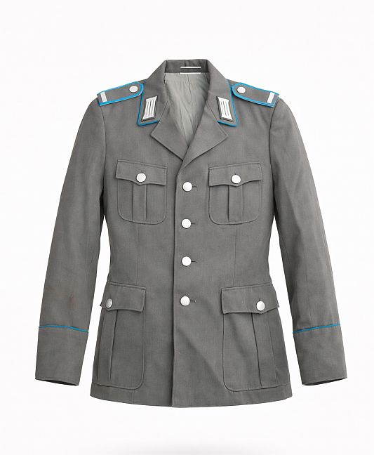 Authentieke militaire uniformjas uit de voormalige DDR (Deutsche Demokratische Republik), gedragen binnen de Nationale Volksarmee (NVA) bij de luchtverdedigingseenheden. Een bijzonder verzamelstuk uit de Koude Oorlog met een herkenbare en stijlvolle militaire uitstraling.