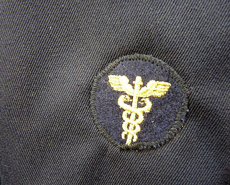 • geborduurd medisch mouwembleem (caduceus) in goud