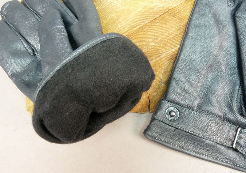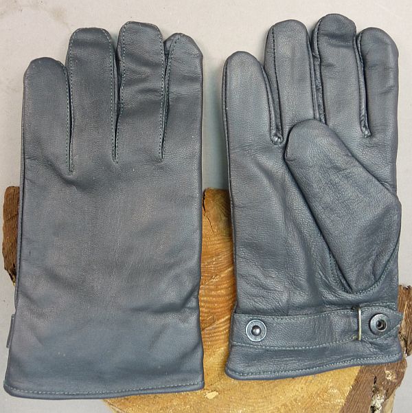 Grijs/blauw leren handschoenen met polsriempje, KLU, oud model aantal