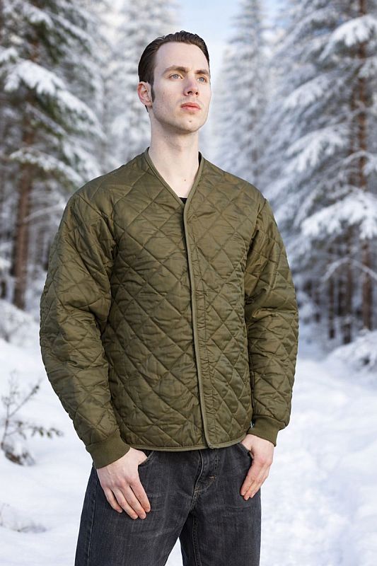 Deze olijfgroene gewatteerde thermo jas is een functionele en tijdloze jas die ontworpen is voor warmte en comfort in koude omstandigheden. De diamantvormige quilting zorgt voor een gelijkmatige isolatie, terwijl het lichte gewicht de jas prettig draagbaar maakt.