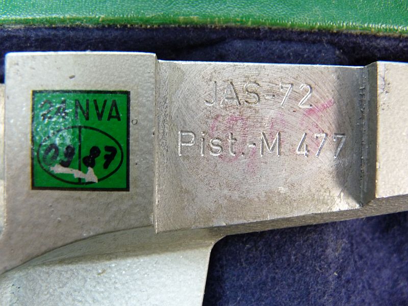Deze originele DDR justeer- en controle set (JAS-72) werd gebruikt door de Nationale Volksarmee (NVA) voor het nauwkeurig afstellen en controleren van de vizieren van het Pistole-M (Makarov) pistool.