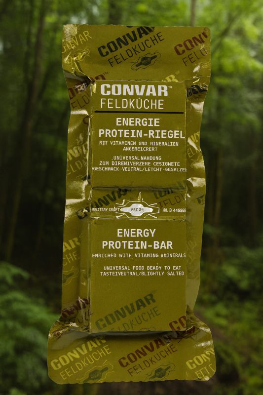 De Energy Protein Bar is een heerlijke reep met een sublieme, hartige umami-smaak. Hij is speciaal verrijkt met een mix van mineralen en vitaminen voor een optimale energievoorziening. De reep is niet alleen lekker, maar heeft ook een bijzonder hoog eiwitgehalte, waardoor hij zeer voedzaam is en langdurige energie levert. Bovendien onderscheidt de CONVAR Field Kitchen Energy Protein Bar zich door zijn lange houdbaarheid, (Minimaal 12 jaar) waardoor hij ideaal is voor gebruik in het veld en bij buitenactiviteiten.