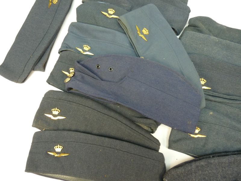 Aangeboden een lot originele Nederlandse Luchtmacht schuitjes / veldpetten met metalen embleem (vleugels met kroon). Deze schuitjes werden gedragen als onderdeel van het uniform van de Koninklijke Luchtmacht.