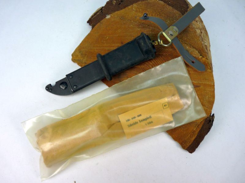 Origineel Oost-Duits (NVA) surplus – complete schede voor de AK47/AK74 bajonet, type 6H4, zoals gebruikt door de Nationale Volksarmee (NVA) van de voormalige DDR.