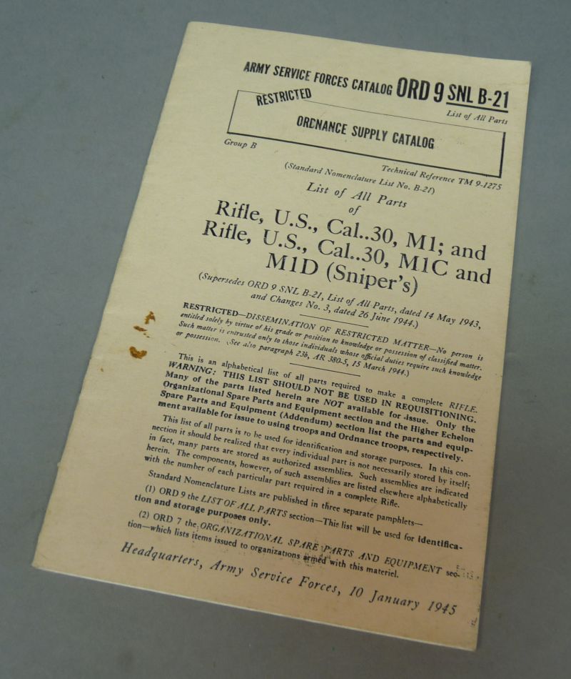 ORD 9 SNL B-28, ASFC, OSC, lijst van alle delen van karabijn, Cal. .30, M1, M1A1, M1A3: 1945