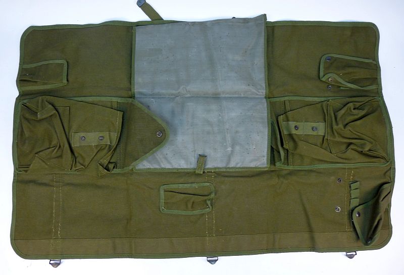 Deze originele CW-206/GR canvas accessoiretas is een authentiek militair onderdeel van de Amerikaanse AN/GRC-9 veldradio uit de jaren 50–60. De tas is uitgevoerd in stevig olive drab canvas en is ontworpen als opvouwbare gereedschapsrol met meerdere vakken en sluitingen voor het overzichtelijk opbergen van onderdelen en onderhoudsmateriaal.