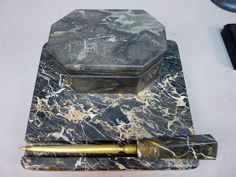 Prachtige vintage bureau set – marmerlook & origineel inktstel