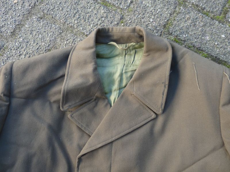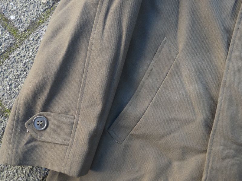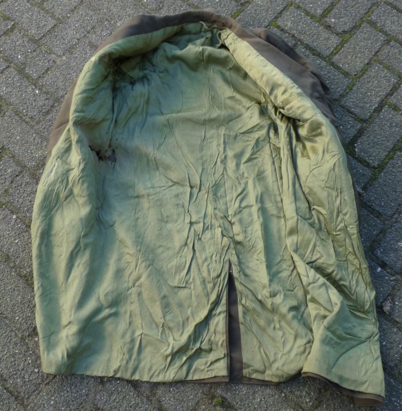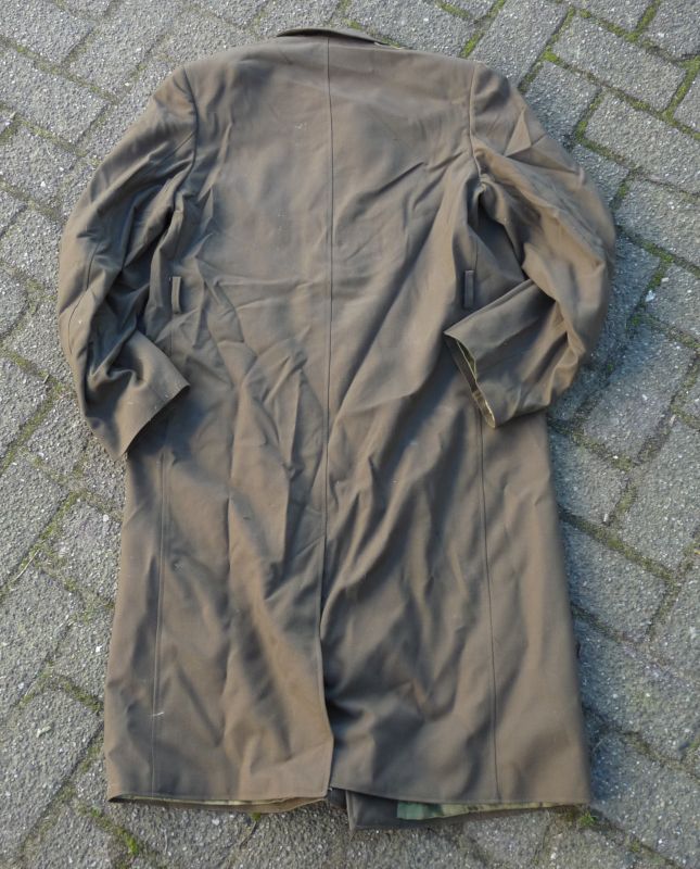 Originele Sovjet lange herenjas – olijfbruin met groene voering