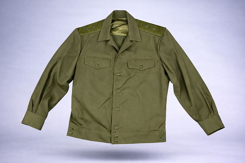 Dit type veldblouson werd gedragen door generaals tijdens operationele of informele situaties, waar een praktischer uniform gewenst was dan het ceremoniële tenue. De combinatie van eenvoud (kunststof knopen) en luxe (geborduurde schouderstukken) maakt dit een interessant stuk dat zowel gebruik als status weerspiegelt.