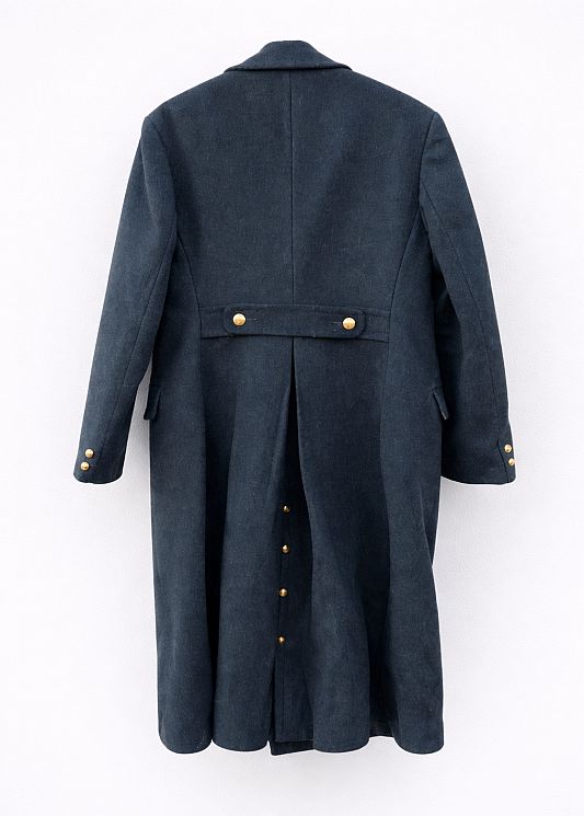 Deze mantel is typerend voor een Sovjet officiers- of parade-uniformjas, waarschijnlijk afkomstig uit de jaren 70 of 80. Het sobere maar statige ontwerp straalt autoriteit uit en werd gedragen bij formele gelegenheden of in winterse omstandigheden.