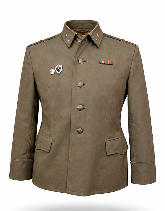 Dit Sovjet officiersuniform ademt geschiedenis en is een zeldzaam voorbeeld van originele Oostblok militaire kleding uit de jaren 1980, met een sterke uitstraling en hoge authenticiteit.