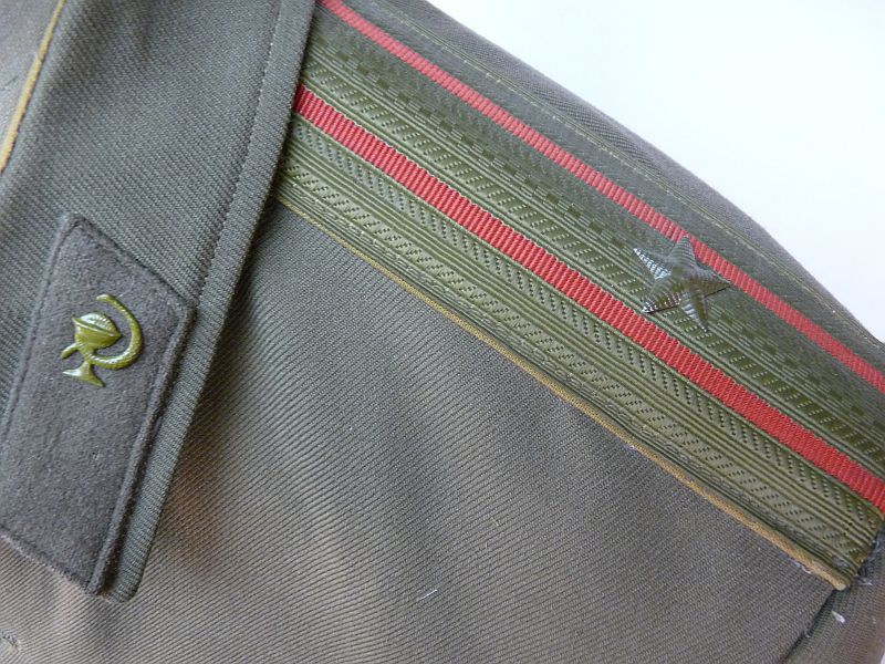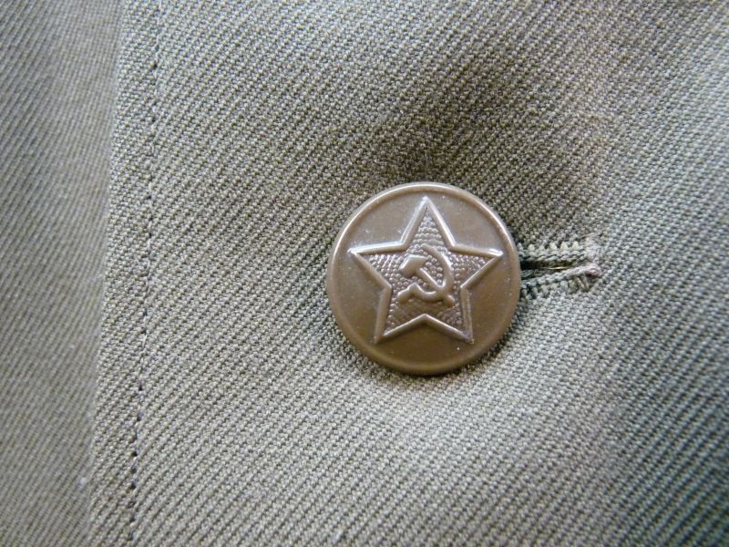 Het jasje is afgewerkt met originele Sovjet knopen met ster, kraagspiegels met medisch embleem en authentieke borstinsignes, wat het een historisch en verzamelwaardig stuk maakt. Ideaal voor verzamelaars van Sovjet militaria, Koude Oorlog memorabilia, museale collecties, reenactment of decoratie.
