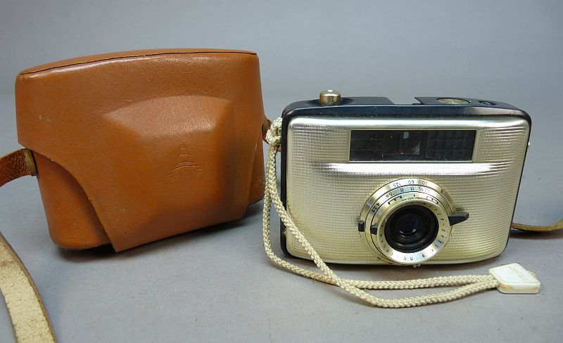 Mooie en stijlvolle vintage camera uit de DDR, uitgevoerd in een klassieke zilver/zwarte behuizing met luxe uitstraling. Deze camera is voorzien van een Meyer-Optik Domiplan 30mm f/3.5 lens, een bekend Oost-Duits objectief.