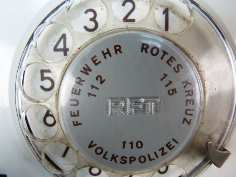 - Originele DDR noodnummers zichtbaar in de draaischijf (o.a. Feuerwehr 112, Volkspolizei 110)