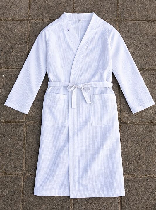 De jas heeft een tijdloos en functioneel ontwerp met lange mouwen, een overslagmodel en een tailleband om de jas eenvoudig te sluiten. Dankzij de ruime pasvorm biedt de badjas veel bewegingsvrijheid en comfort.