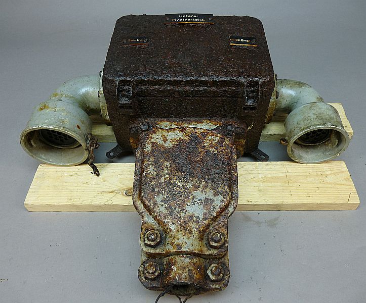 Zeldzame originele bunker kast / verdeelunit met opschrift “Unterer Pivotverteiler”. Dit type werd gebruikt in Duitse bunkerinstallaties (Leitstand / commandoposten) voor het verdelen van signalen of bekabeling.